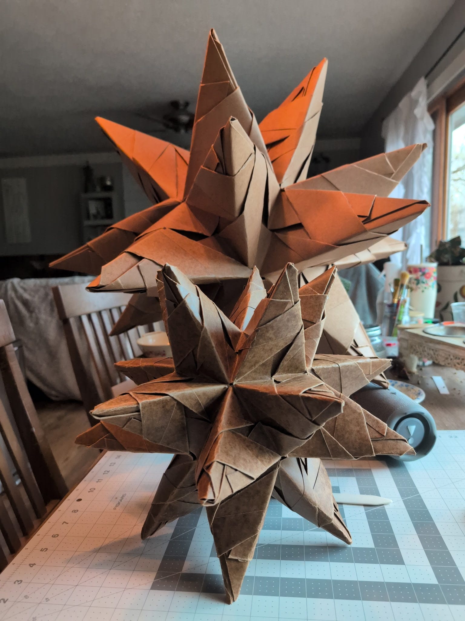 It’s originally in 2 x 3 foot sections. I cut them down to make this smaller stellated icosohedron (30 pieces). Each piece was 6 in by 12 in.